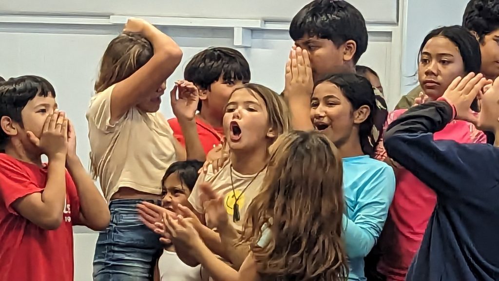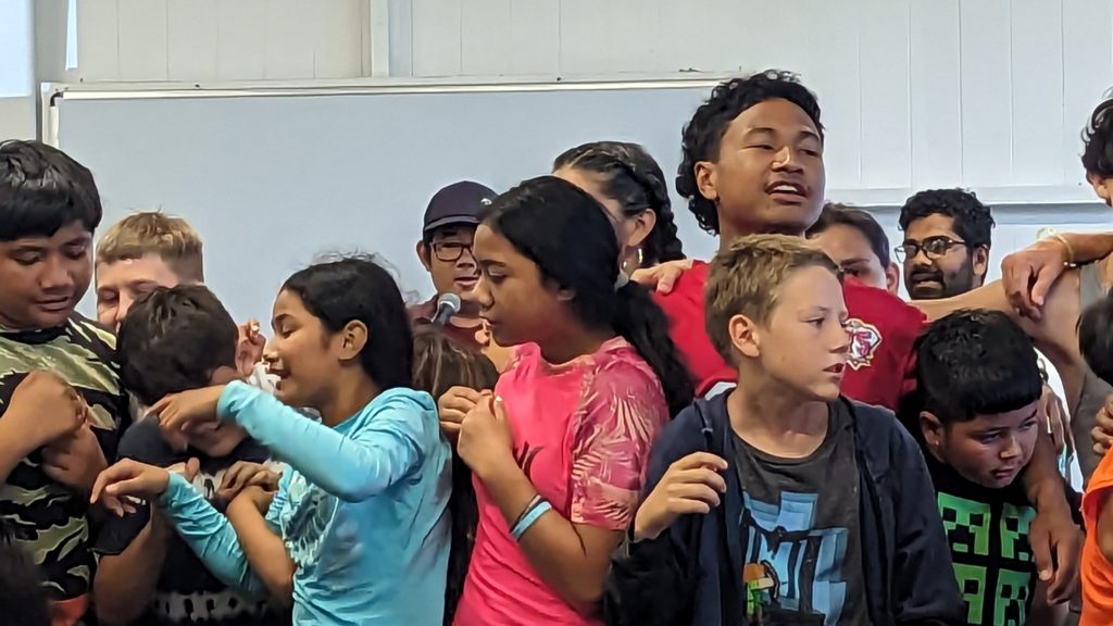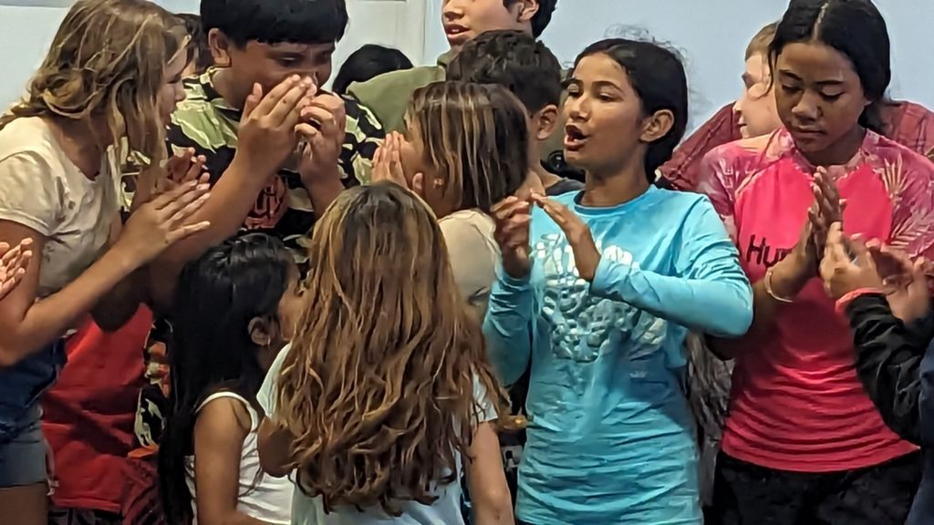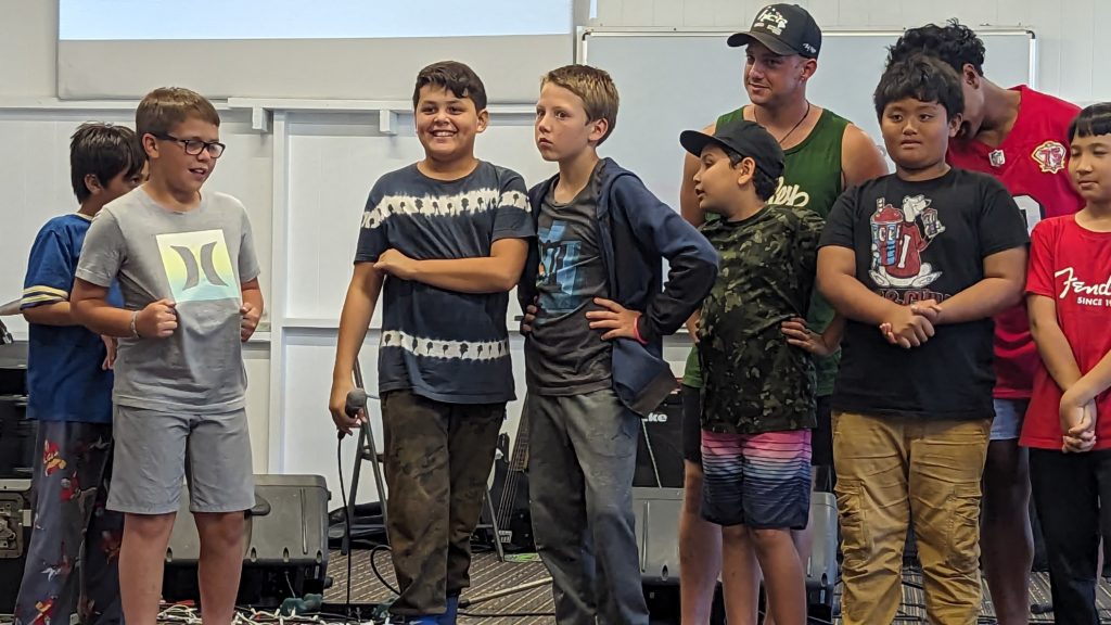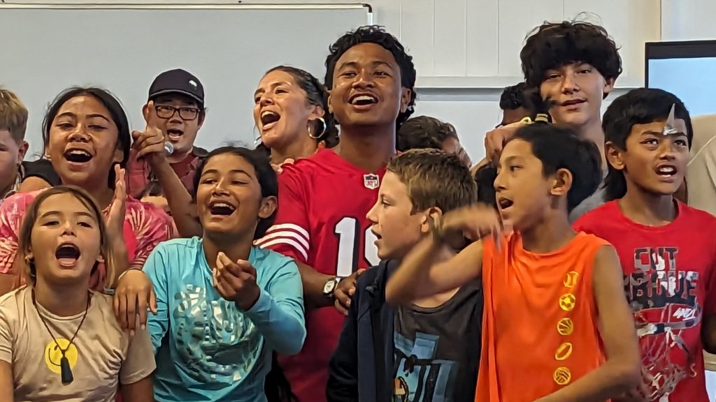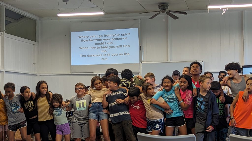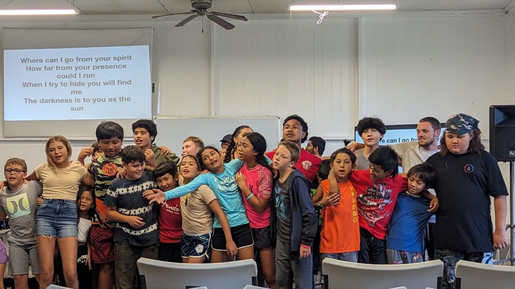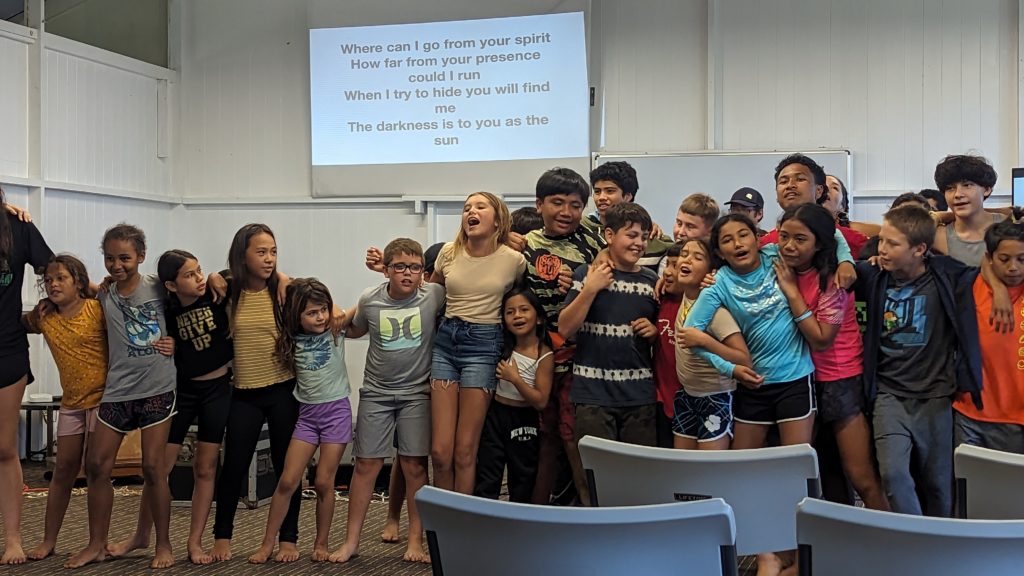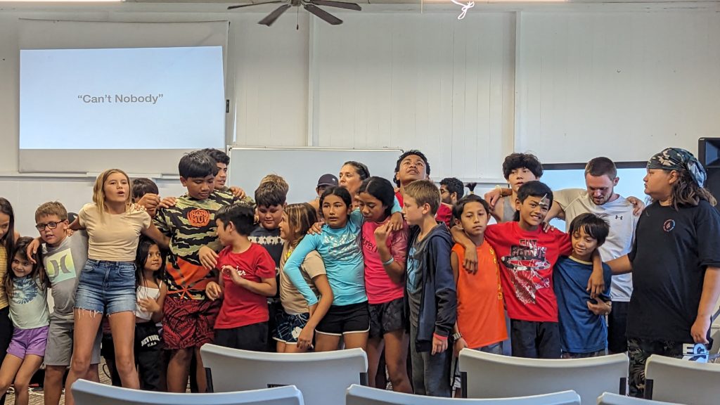 Final Day at Camp Lokahi 2024. Smiles on the faces of the children as they sing. It was a surprise and blessing to watch the joy and enthusiasm as they gave the final performance. After show we were delighted to discover a nice spread of food prepared for all. Another unanticipated and pleasant surprise. Thank you to all who contributed time and energy to provide this great evening experience.